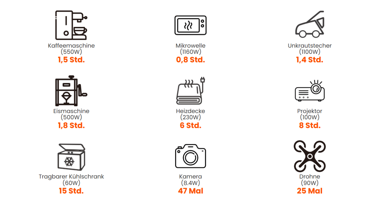 Die Explorer 1000 v2 tragbare Powerstation liefert eine beeindruckende Leistung von 1500 W – das sind 50 % mehr als bei früheren Modellen. Sie ermöglicht den reibungslosen Betrieb von Hochleistungsgeräten wie Kühlschränken, Wasserkochern und tragbaren Klimaanlagen und ist damit der ideale Begleiter für all Ihre Energiebedürfnisse. Zusätzlich bietet sie USB-A/C-Anschlüsse, bis zu 100 W Dual PD (Power Delivery) Laden und die Kapazität, mehrere Geräte wie Telefone und Laptops gleichzeitig zu versorgen.