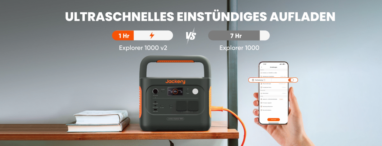 Bleiben Sie mit der Jackery 1000 v2 in jeder Notlage vorbereitet. Diese tragbare Stromquelle hält essentielle Geräte wie Telefone, Radios und medizinische Hilfsmittel stets betriebsbereit. Mit hoher Kapazität und vielseitigen Anschlüssen sorgt sie für Sicherheit, wenn Sie sie am meisten brauchen.