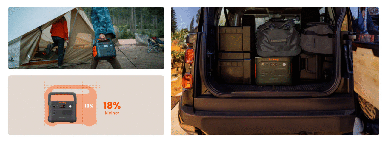 Erleben Sie Camping neu mit der Jackery 1000 v2 – Ihre mühelose Energiequelle im Freien. Egal ob für Beleuchtung, Kühlbox oder Kocher – halten Sie Ihre Geräte geladen und bleiben Sie verbunden. Genießen Sie die Natur mit allen Annehmlichkeiten.